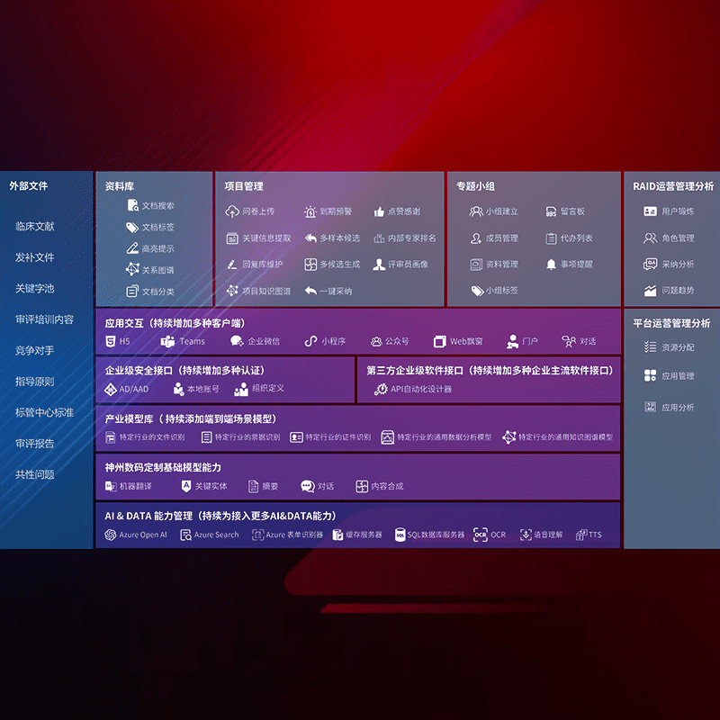 医疗器械产品上市前,,,,要熟悉严格与繁复评审标准,,,,整理分析监管机构指导文件中的海量信息。。。企业急需一个智能化解决方案,,,,提升知识管理效率,,,,提高评审通过率,,,以提升其市场竞争力。。